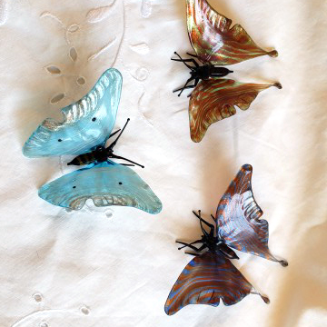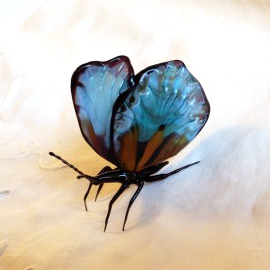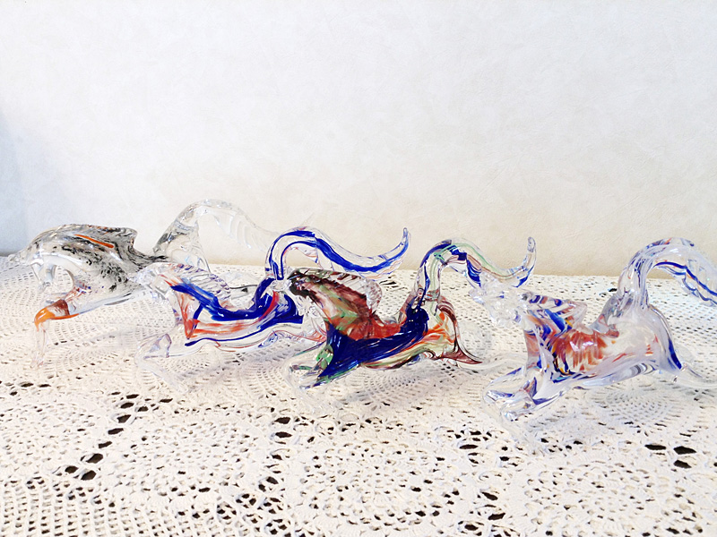 色と材質の違う板ガラスを溶け合わせて作った新作です。