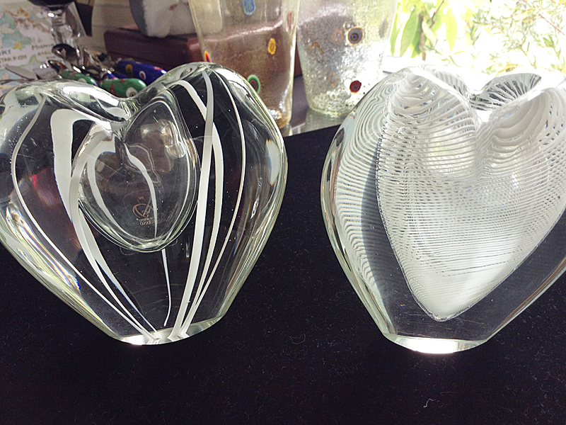 色と材質の違う板ガラスを溶合わせて作ったものです。